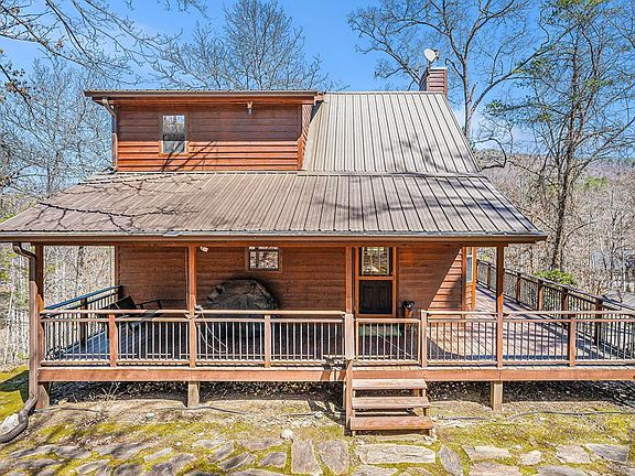 Lake Nottely mountainside retreat! Well-maintained 3BR/2.5BA cabin with a 20 foot deeded lake access located directly across from the detached garage. Nestled on a picturesque 1.08-acre lot, that offers activities such as an evening by the fire pit area, zip lining fun, or lake activities such as swimming, boating or fishing. Public boat ramp is just minutes away. Enjoy easy access with paved roads and a paved driveway leading to the cabin. A detached 2-car garage offers plenty of space for at least an 18-foot boat and all your lake toys. This is a lake home without the lakefront price! Located in a quiet lakefront neighborhood with lake and mountain views. Inside, you'll find a gas-burning fireplace with a vented chimney, a wraparound porch perfect for taking in the scenery, and plenty of storage throughout. Bedrooms and baths are conveniently located on each level. Master can be on the main or in the loft area. Recent updates include a brand-new HVAC system and a fresh exterior stain with four coats on the sun-exposed side. No covenants and short-term rentals are allowed. Private end-of-the-road location—perfect for a weekend getaway or full-time living!
