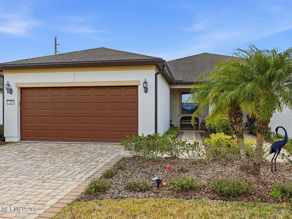Welcome to easy living in Bridge Bay at Bannon Lakes! Tucked away in a gated 55+ community in the heart of St. Augustine's World Golf Village area, this home is all about comfort. The layout features two spacious bedrooms, two full bathrooms, and a versatile flex room perfect for an office or hobby space. You'll love the open-concept interior that flows nicely between the kitchen and living areas—it's bright, inviting, and great for entertaining. Plus, the house backs up to a quiet area with no rear neighbors for added privacy.