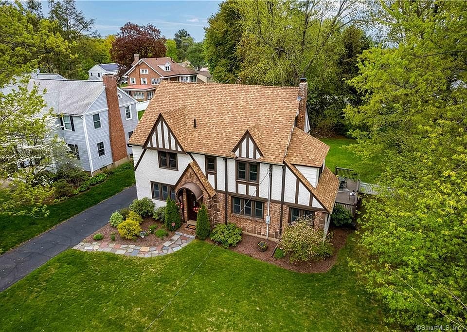Stylishly remodeled Tudor with today's discerning buyer in mind. Beautiful amenities include dark stained hardwood floors, custom millwork, 9' ceilings, updated Kitchen & Baths, custom blinds, & finished 3rd Floor. Spacious sun-drenched rooms create inviting space to entertain. Fireplaced Living Room overlooks the Deck & opens to the light-filled Office; equipped with wet bar & trimmed with French doors that lead to the Deck. The formal Dining Room that leads to the Kitchen is an ideal setting for gathering friends & hosting holidays to create memories for years to come. The Chef's Kitchen features gas range with hood, sleek granite counters, stainless appliances & white cabinets with glass front accents. Large Mudroom, Laundry, Full Bath & a wrap around Deck completes the main level. The upper level unfolds a lovely Primary Suite with Carrara marble Full Bath & Dressing Area, 3 additional Bedrooms with great closet space & an updated Hall Full Bath. The 3rd Floor Bonus Room offers amazing overflow living space for an optional 5th Bedroom, 2nd home Office, or Media Room. Unfinished Lower Level presents great storage with painted concrete floor. This home is beautifully maintained & boasts central air, warm-air gas heat, updated electrical & plumbing throughout, new roof, spray foam insulation to reduce heating and cooling costs & a resealed driveway. A dream come true! Convenient to schools, golf, shopping, fine dining. Please submit highest & best offer by Mon 5/22 at 8PM.