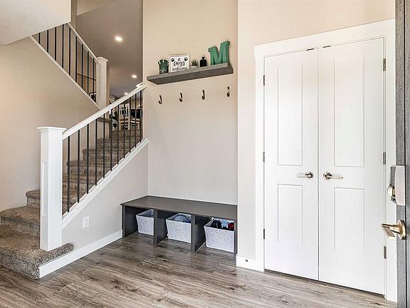 Open-concept main floorQuartz countertopsLarge centre islandTile backsplashCorner pantryGas fireplaceMain floor bedroom
