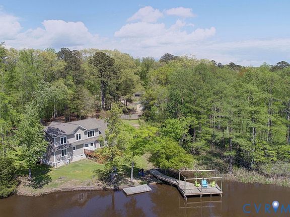 It's true: 16 Acre Horse Farm on Powhatan Creek, leading to the James River, 5 ft MLW, 2500' of shoreline & 3 stall stable with hay storage. This peaceful oasis is 7 miles from I-64 then to Richmond or minutes from Colonial Williamsburg and Billsburg Brewery. The quality of this construction is impeccable, including custom cross saw Brazilian Tiger Oak Cabinets, Engineered & Brazilian hardwood floors, leathered finish granite countertops, tiled shower, 6-G Glo Fiber cable with WIFI coverage out to stable, solar privacy gates and detached garage. Equine Facilities include horse barn with feed-room/tack-room, shaving bin, wooded trails & ample pastures. The waterfront deck and boat dock, with boat access from bank, allows a front row seat to the quiet-natural setting for eagles, blue herons, turtles, and fishing. HVAC 2024, deep well, new septic distribution box, Simply Safe Security. A lifestyle opportunity rarely found. Make sure you notice the custom trash can hut at entrance.