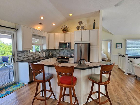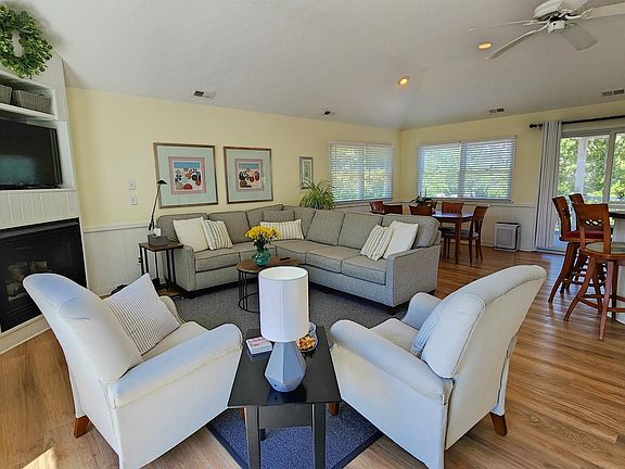 Pristine home with superior workmanship and tasteful updates being sold furnished! Enter at the split-level front entry to appreciate the architectural aesthetics of this stylish home. This gracious greeting area introduces you to the lustrous wood-grained LVP that runs through all levels. The carpeted staircase with striking balustrade leads up to the main living area where cathedral ceilings and plenty of windows create a cheery gathering space with gas fireplace. The dining/kitchen area includes tasteful wainscoting, updated back splash & stainless appliances. A sunny west deck overlooks the scenic neighborhood, and oversized covered decking on the east provides lots of space for entertaining. One bedroom with custom shelving and a full-sized hall bath complete the top level. A half-point stair landing provides a buffer to the bedrooms on the mid level. The primary suite features a walk-through closet with dual access doors and private bath with tile walk-in shower and double sinks. The other two sizable bedrooms access a shared bath. Head to the ground level bonus room that is currently staged as an additional sleeping area. The dry entry opens to the oversized 2-car carport with attractive lattice accents, storage room, and outside shower. Two gates open to the expansive fenced back yard embellished with walkways, plant beds, and tasteful landscaping. The shaded patio provides another gathering area, and a shed is cleverly built under stairs leading back to the main level. The low-maintenance exterior boasts new cement fiber board siding & window trim, composite decking with vinyl railings, newer roof (6 years,) and mostly new windows. This original owner has fastidiously maintained the property, and the effective age is much newer. See associated documents for a list of upgrades and improvements. The 18,000 sq ft lot perched in sought-after Southern Shores should provide room for a pool. Join the Civic Association and take advantage of numerous parks, walkways, and leisure areas throughout the town, including pickleball right across the street! More details at https://www.sscaobx.org/membership-benefits