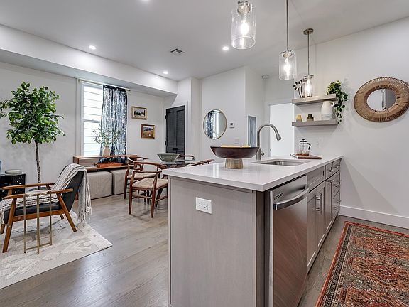 Light, bright and modern, this newly finished two bedroom home is one block to either Washington or Riverview Fisk Park in Jersey City Heights. Elegant design shines with loads of light illuminating hardwood floors and stylish contrasting matte back doors throughout. Eat-in kitchen gleams with white quartz counters, exposed shelves, custom cabinets, tile backsplash and stainless appliances. Bedrooms boast ample closet space, while bathrooms host finishes like traditional penny tile shower floors, large vanities and polished chrome fixtures. Home features dedicated laundry area for added convenience. Ideally located in the heart of The Heights, this home is perfectly positioned walking distance to major thoroughfares, great parks, and easy NYC access. Jersey City Heights is known for its excellent community and parks, great schools, eclectic shops and restaurants, and proximity to surrounding urban areas.