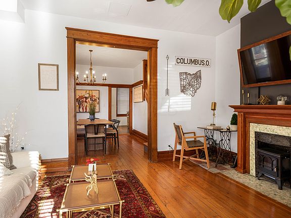 Located steps away from Schiller Park in German Village, this end-unit condo looks like it's straight out of a magazine! Professionally designed, you'll find the perfect mixture of original charm & modern updates from original pine floors & trim, to a gourmet kitchen featuring granite counters & high end stainless steel appliances including a 30'' Forno gas range & 33'' built-in fridge. Second floor features a primary suite with antique sliding door leading to the newly renovated ensuite bathroom with custom tiling, repurposed antique vanity & Delta fixtures. Two additional bedrooms & second full bath with 48'' clawfoot tub/shower, pedestal sink, & custom tile. Enjoy the outdoor oasis in the large, private fenced yard.