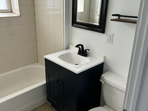 One bedroom 9x16, living room 10x16 and kitchen 10x12. Whole apartment Freshly painted, new kitchen floor, new counter tops, new kitchen sink/faucet, new bathroom vanity, sink/faucet and shower head. New blinds. Walking distance to train station, gym, and restaurants. No Realtor Fees.