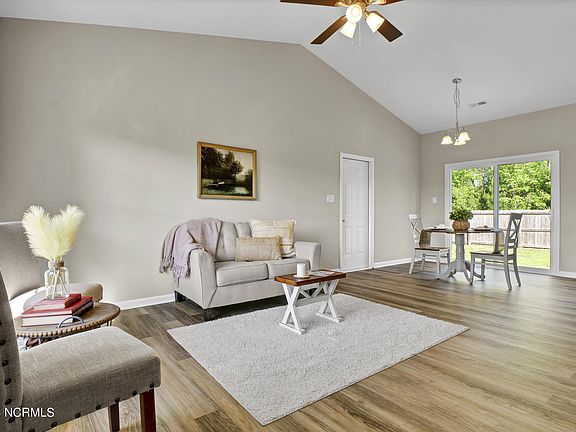 Upon entry, you are greeted by a welcoming living room that seamlessly transitions into the dining and kitchen area, creating an inviting and cohesive living space. The kitchen is adorned with new countertops, refinished cabinets, and new stainless-steel appliances, elevating the culinary experience. The home has been thoughtfully updated with fresh paint and new Luxury Vinyl Plank (LVP) flooring throughout, while the bedrooms exude comfort with plush new carpets. Additionally, the property features a fenced-in yard, new lighting fixtures, upgraded plumbing fixtures, and a sense of privacy, culminating in a truly ideal place to call home!