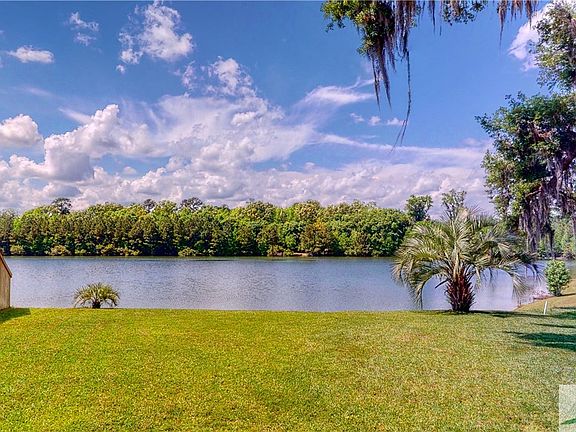 Full brick, lakefront property features a wall of windows overlooking the beautiful lake from the great room and dining area and is visible as soon as you walk into the front door of this amenity packed home. This split bedroom floorplan home was recently renovated with wood flooring, interior paint, custom tiled master bath with walk-in spa tub and custom tiled shower with rain and hand-held shower heads. The back deck is perfect for bird watching & enjoying the sunset views over the lake, also pre-wired for your new hot tub installation. The backyard is surrounded by a custom-built privacy fence, has spray foam insulation, security camera system, electric fireplace, inground sprinkler system & granite counters in kitchen. The large side lot to the right has room for a storage building or detached garage with HOA approval. Conveniently located to I-95, Pooler and Savannah. Home is also ADA accessible. Seller is licensed GA Realtor.