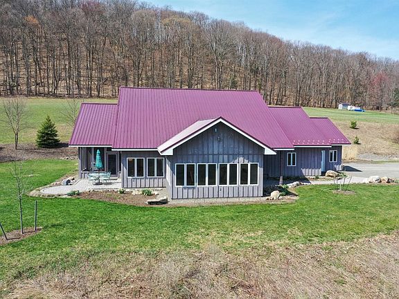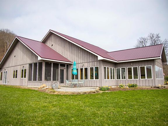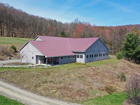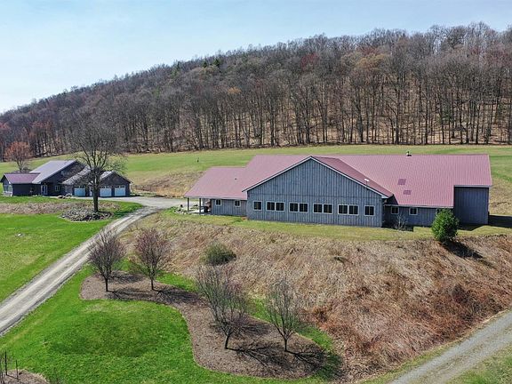 You've never experienced anything like it! This 41 acre Ellis Hollow hillside was once the setting of a private ski hill; now the property is known as The Ledge, a spectacular custom home & barn/shop w/180 degree views. Both barn & home were constructed by Kermit Cutter, in 2005 & 2008. The one br, 2 full bath home has over 2800 sq.ft. w/central air conditioning, radiant floor heat, walls of Marvin windows trimmed with oak, a 260 sq.ft. dressing room, & kitchen w/commercial quality grill, range hood & warming oven. The shop/barn has a total of over 8500 sq.ft.;3200 sq.ft. of heated shop space, office, & sleeping room (w/full bath) & sep.septic. The remainder of the barn has 3 overhead garage doors, 30 foot high ceilings & feels as large as a hangar. The grounds: a graceful, winding drive, a 2/3 acre swimming pond (with dock) that is 10-12' deep & stocked w/bluegills & koi. Patios, porches and walkways abound, from which to enjoy the setting.
