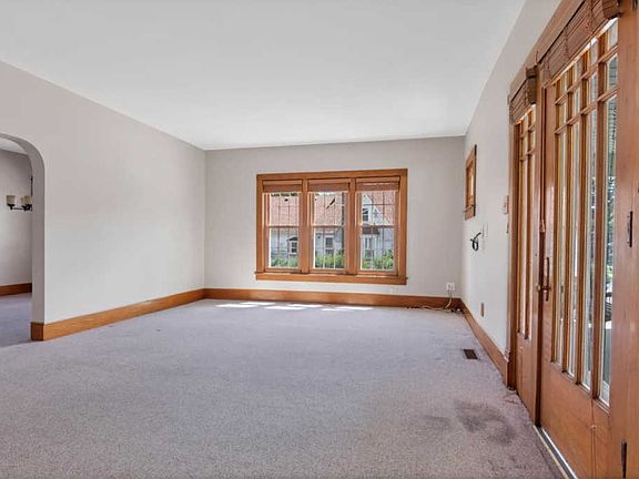 LITERALLY CAN NOT HANDLE ALL OF THIS CHARM! You will FALL IN LOVE with this IMPECCABLY maintained Cape Cod. Desirable covered front porch, timeless brick foundation bordering the home, & nestled on DOUBLE LOT. Enter to freshly painted, SPACIOUS LIVING ROOM w/ ORIGINAL custom CRAFTSMAN STYLE TRIM, beautiful windows, & original archway separating living / massive formal dining room. Formal dining is perfect for family gatherings, entertaining, and/or phenomenal option for large, open, eat-in kitchen in the future! Dining open to main bedroom & attached recently updated FULL bathroom. Spacious eat-in kitchen w/ original classic chair-rail, and ample cabinet / counter space! MAIN FLOOR LAUNDRY leads you to TWO unbelievable unfinished spaces!! Seller had plans to easily finish upper level w/ additional beds & full bath. FOUNDATION COMPLETELY REPLACED! Basement has 8FT CEILING, new electrical, CONDUIT, & bath rough-in.Electric/water ran to oversized 24X30 GARAGE. This one is a MUST SEE!!!