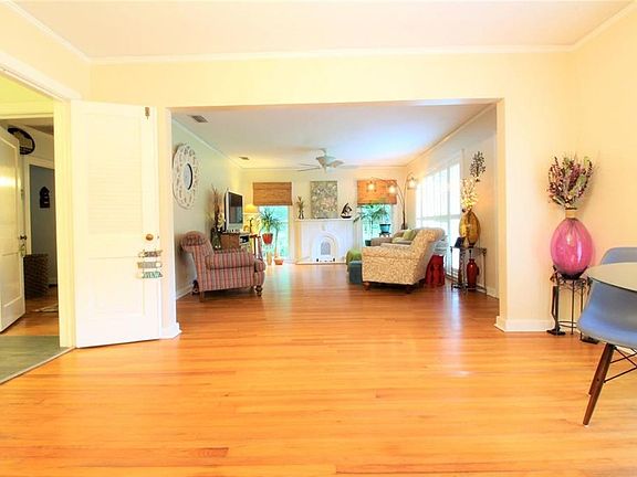 You will fall in love with this beautiful historic home in popular Mount Island! Charming home features original hardwood floors in living areas and bedrooms as well as original pretty black and white tile in the very spacious bath. Upon entering, you will notice the beautiful unique fireplaces flanking the lovely open living area. Plenty of windows, accentuated with wooden plantation shutters flood the home with natural light. Kitchen has been updated with new flooring and nice stainless steel appliances. Enjoy the informal breakfast nook just off the kitchen, and the home has a formal dining room as well. You will have plenty of storage with the attractive cabinets and decorative shelving, and the kitchen overlooks your very own "secret garden"...a New Orleans style courtyard complete with lush tropical plants and a beautiful fountain, all enclosed by gorgeous decorative wrought iron. Screened in back porch runs the length of the house and has a nice swing to enjoy summer breezes and the large, landscaped backyard. This home even features a detached garage...a rarity in midtown! In addition to the garage, there is a covered carport in back of home that may be used as a covered patio for gatherings and entertaining. Home's interior was recently repainted. Washer and dryer to convey. This one-of-a-kind property is a must see! ***Listing Agent makes no representation to accuracy of square footage. Buyer to verify!***
