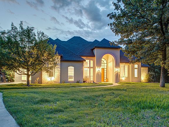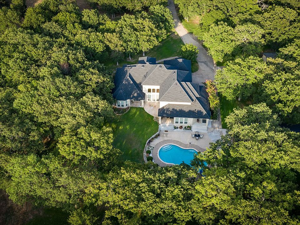 Exquisite traditional-style home features grand high ceiling entry hard wood floors and two fireplaces nestled between mature oak trees abundant with greater than seven species of birds, hawks and owls. This home is ideal for an active family but also has calm serenity and plenty of open space for enjoying wildlife and star gazing. It has 4 traditional bedrooms with adjacent bathrooms, dining and family rooms, separate office and a large bonus room. Spacious open kitchen and entertaining room with large windows maintaining full views of the backyard in ground pool and child play areas. Full bath immediately adjacent to pool allows for easy transition of wet kids into the home. There is a separate 1300 square foot work-out room with an endless pool swim spa and jacuzzi allowing access to year round swimming, water aerobics and jetted massage. This room has an in ground tornado shelter, HVAC and is fully plumbed and wired ready for addition another in law suite if desired. Spacious and versatile 3,200 sq ft metal building featuring a full indoor basketball court and plenty of room for storage. Perfect for sports, hobbies, or business use. High ceilings, durable construction, and endless potential—all under one roof!