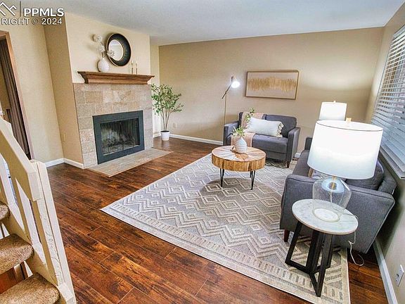 Enjoy this beautifully appointed townhome with lots of entertainment space and large bedrooms to enjoy! This townhome has been beautifully maintained and updated with luxury vinyl floors, kitchen cabinetry and two car covered carport and conveniently located guest parking for friends and family. This townhome is move-in ready for the next owners to enjoy. Located within walking distance to elementary and middle school and local restaurants and grocery stores. HOA includes water, sewer and gas, trash, snow removal and all common community amenities and exterior building maintenance. The indoor pool and workout gym is conveniently located in the club house directly in front of this townhome. Award District 20 school district. Pikes peak views from the west facing master suite. Double Master Suites upstairs feature a jack and jill and double vanity bathroom with newly installed luxury vinyl flooring. Private patio is fenced with large storage closet that is large enough for bikes and any other outdoor equipment. Welcome to Home Sweet Home.