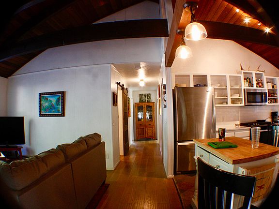 Privacy in abundance. This creekside home only 2 miles from downtown Ouray features 2 dwellings on .6 acres. The main house, 3/2 features a creekside patio and the 1/1 guesthouse has its own private covered deck. New stainless appliances, quartz countertops. Natural gas fireplace, range and BBQ. Large garage with room for ATV's etc.. Excellent potential year round rental income. Furnishings included. Studio brand new. By Appointment Only. Beginning June 3rd. Contact Carole: email: carjoy@msn.com or text: 228 342 0129. will cooperate with buyer's realestate agents. @2.5%