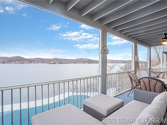 Boat slip and lift included! This furnished and spacious unit offers a lakeside master with private bath wall of glass, and deck access. The oversized screened in deck will be your HAPPY PLACE! Open concept living room has a beautiful stacked stone fireplace. The kitchen offers plenty of storage, full laundry room and breakfast bar! This area at the 34 MM is close to the popular four corners area with easy access to the peaceful waters of the Big Niangua. Take a boat ride to the nearby CAVE BAR, sip a rum runner at CAPTAIN RONS or just sit by the waterfront pool and watch the boats go by. 12x30 boat slip with BOAT HOIST is included! There is also a storage locker included. Windsor Bay is a well kept complex and has wave-breaks to protect the docks! Take look at the clubhouse with gym and lakefront pool with enormous views. So much to love! Buy your very own lake getaway now so you will be ready for SUMMER FUN!