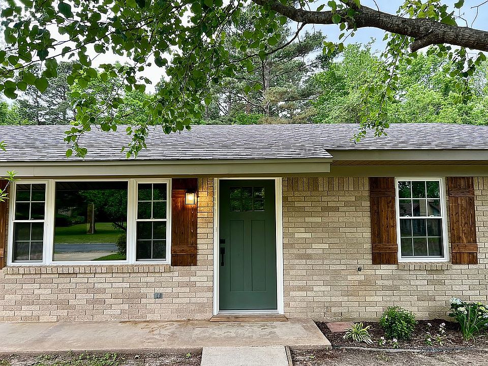 Located within city limits at the end of a dead end street. Cute, quiet neighbor-hood but close enough to conveniences. This home has tons of charm! It boast a large living and kitchen with open floor plan. BEAUTIFUL exposed cedar beam & an all new kitchen to die for! You will swoon for the stunning dark olive cabinets! Almost everything is BRAND NEW! NEW: roof, eaves, windows, drywall/paint, flooring, landscaping, kitchen, granite countertops, stainless steel appliances, and More!