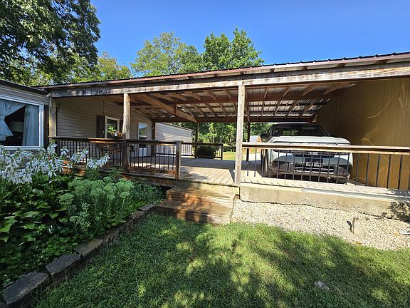 This 8 acres M/L is a one-of-a-kind property minutes south of Marshfield and less than a 30-minute drive to Springfield. This property features great views, and TONS of wildlife out your back and front door. Pick a deck to sit on, because you won't be disappointed. The rear deck has a direct view of Ragsdale creek which borders the south and east side of the property. This home is meticulously kept and loved by the seller. It features two bedrooms split for privacy, and two full bathrooms. This home has large dual closets in the primary bedroom, and a large closet in the spare bedroom. It also has an attached carport and a nice sized built-in garage for your dry storage or small vehicle. With mature landscaping, large firepit and great views, this one is definitely one to put on your list of viewings.