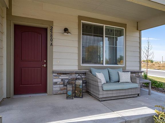 Welcome to 2580 Brookstone Drive, Unit A, a charming Ranch-style end-unit townhome located in the heart of Milliken, CO. This elegant residence boasts 2 spacious bedrooms and 2 well-appointed bathrooms, spread across an expansive light-filled living space. Originally a model home, it features a welcoming front porch and offers the ease of low-maintenance living.