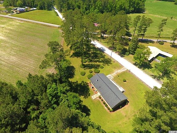 Charming brick ranch located on just over 1 acre in tranquil Green Sea. Well-maintained and recently updated with new paint, flooring, kitchen cabinetry and crown-molding, you will instantly love this country estate. With two bedrooms and two full baths, a large living room and separate dining area, plus a generous breakfast nook in the kitchen, you will easily find a place for each of your favorite activities. Luxury vinyl sheet flooring was installed in the main living areas and gray tones on the walls complement the natural wood cabinets and custom cabinetry-lighting in the breakfast nook. The laundry room can be located in the carport storage shed, but the master bedroom closet is also wired/plumbed for both a washer and dryer. The large ramp at the front door makes this house very accessible for wheelchairs or strollers. Through the french doors, the back patio pad offers a space for your BBQ and there is privacy by way of the trees planted along the property line. Store your tools in the shed which measures 8x12. With farmland surrounding the property, it is extremely quiet, and ideal for someone looking for true country living; the outdoor acreage is a blank canvas that offers endless possibilities. Enjoy rural living with no HOA, just bring your hammock and settle in! You are also close to the NC state line, and approx. 40 minutes from Cherry Grove Beach for entertainment and dining options. All measurements are approximate and buyer is responsible for verification.