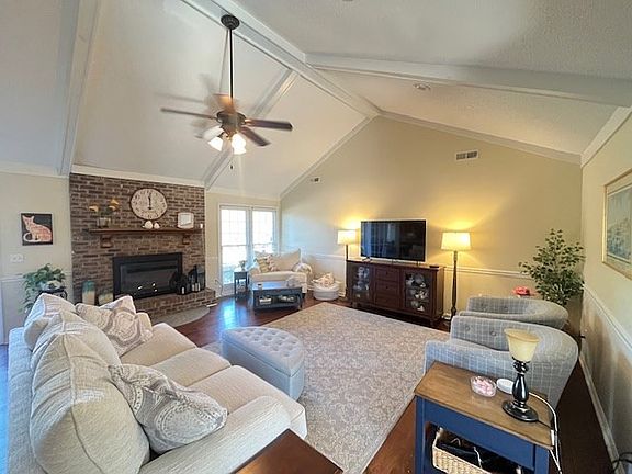 Immaculate 3 bedroom , 2 1/2 bath home in quiet, established neighborhood. MOVE IN READY! Large welcoming front porch with spacious foyer with full length windows. Great room with cathedral ceiling with brick fireplace and gas logs. Eat in kitchen with ample granite countertops. Large laundry room (mud room) with cabinets, a closet, and more counterspace. Master bedroom with two closets and bathroom with tiled shower and separate vanity area. Dining room can be multifunctional with french doors entering the room. Outside has a back deck and a wired storage shed. Oversized 2 car garage. Sprinkler system with well.