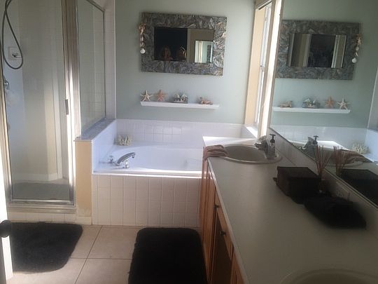 Gorgeous home in highly sought after Riverside At Twin Rivers Community. This is a Cull-De- Sac location home with lots of privacy and an extended driveway. Front & rear patios are finished in brick and pavers. Open Floor Plan with kitchen overlooking spacious family room. Separate dinning area with living room. Great, split bedroom floor plan with master suite on one side of home and bedrooms on the other. Natural wood laminate flooring in living area. Ceramic tile in kitchen and bathrooms. You will like the high ceilings, updated light fixtures and ceiling fans that are already in place. Master suite has a garden tub, shower corner and dual sinks, the ladies of the house will love the large walk in closet as well. The back yard fully fenced, has layered terraces with great landscaping potential, large oak trees provide the much needed shade in hot Florida weather. Yard also has an irrigation system. There is a large 2 car garage with garage door opener also. This home is move-in ready. All appliances stay except for the washer & dryer.