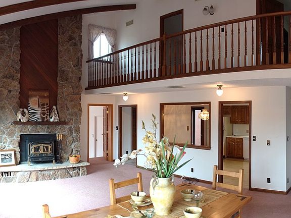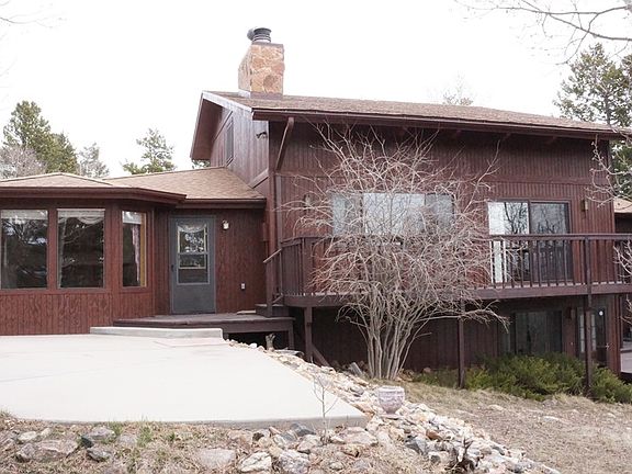 Back on market. Buyer got cold feet. View of Colorado 14ers from three wood decks. Mature pines/field of Colorado Aspen. Watch the seasons change on level 1.7 acre lot. Small shed for 4H critters. The home was built in 1980 and the architecture and fixture scheme's are indicative of the period; Main level master, Jack and Jill bedrooms upper, soaring living room ceiling, moss rock fireplace, rec room basement. Today the lower level may hold income potential with its separate entrance.