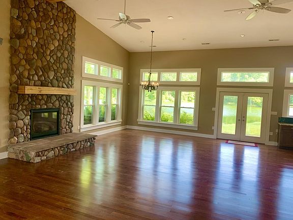 If you're looking for privacy, water, and a stunning home....look no further. Nearly every room of this 4774 sq. ft. home has a water view. This unique property has 6-7 acres (subject to survey) including a large pond in the front of the home and access to a second pond behind the home. The home features 4 spacious bedrooms, 3.5 baths, a stunning fully-applianced kitchen with granite countertops, stone fireplace in the great room and a rec room with a 2nd full kitchen. The main level owner's suite has 2 custom finished walk-in closets and a huge bath including a tiled, walk-in shower. There is a screened porch overlooking the scenic landscape. A 3 car attached garage along with a 5 car detached garage provide ample space for cars, toys and storage. You won't believe your eyes with all this property has to offer. Easy access to both I-70 and US 40 for an easy commute.