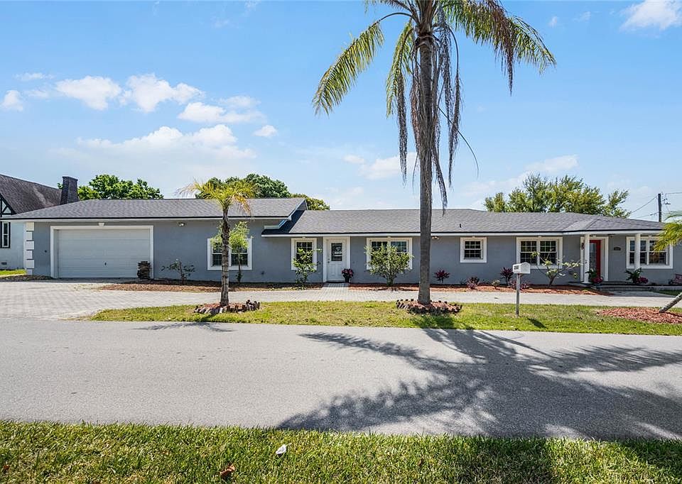 One or more photo(s) has been virtually staged. Welcome to your dream home! This spacious 5-bedroom, 3-bathroom home has a NEW ROOF and sits on a generous corner lot with Coconut, Guava, June Plum, Cherry, Lemon and Tangerine trees! The circular driveway provides ample space to store your RV or boat. The large garage is perfect for car enthusiasts or as a workshop and has a drive thru feature! This home is ideal for multi-generational living or a home based business, featuring an outdoor kitchen and an additional flex space that can easily convert into a wine room or storage area for canned goods if you like homesteading and gardening. Located near Lake Hartridge Boat Ramp and the Winter Haven Chain of Lakes, this property offers the perfect blend of convenience and lake life living. Don't miss out on this incredible opportunity!