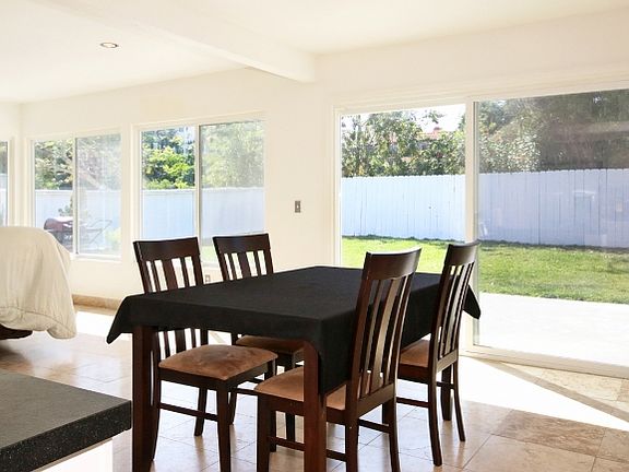 Light and bright ranch style home! Fresh paint and remodeled with travertine floors throughout. Large windows provide an abundance of natural light right into your open living and dining room space. Get ready for your next dinner party because this charmer has it all! Kitchen includes stainless steel appliances and elegant stone counter tops, breakfast bar, recessed lighting and modern white cabinetry. Large yard with patio and manicured lawn, perfect for your next summer barbecue or throwing the ball around. Attention to detail continues throughout including remodeled guest and master bathroom showers. Relax in any of the clean and bright bedrooms, each featuring upgraded wood flooring and plenty of closet space. The master boasts its own private secluded patio! Oversized two car garage with HE washer and dryer and plenty of storage room. Landlord pays for Landscaping; Tenant pays for all other utilities. Pets with approval