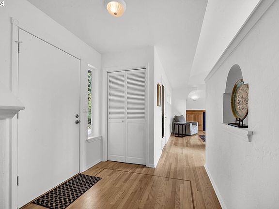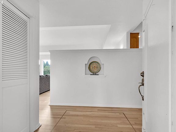 Architecturally designed home with western views overlooking Laurel Hill valley and parks, this home features curved wall and ceiling accents, handmade ceramic sconces by Mikal, hardwood floors on the main level, gas fireplace, open living areas with great natural light, all new interior paint, gas FA and heat pump. The home is located on a 0.18 acre landscaped lot with decks, a terraced backyard, flowering cherry trees, fenced for privacy, and backs up to Laurel Hill Park.