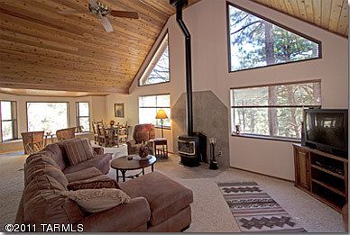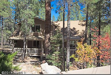 SERENE LOCATION TO ENJOY NATURE IN THE BEAUTIFUL PINES. You must see this charming 3 bedroom, 2 bath home nestled among the trees to appreciate this house on a spacious lot bordering a mountain creek that flows. Relax on open terraces & porches and enjoy watching elk graze in the adjacent open space of Forest Highlands as squirrels jump from tree to tree. Embrace the beauty of the abundance of pines and lush surroundings of native plants and flowers from every window. The large bay window in the great room allows a seating area to relax, read and look out over the tree tops.
