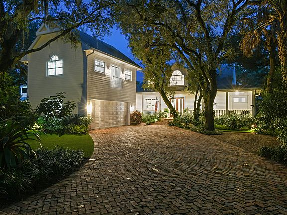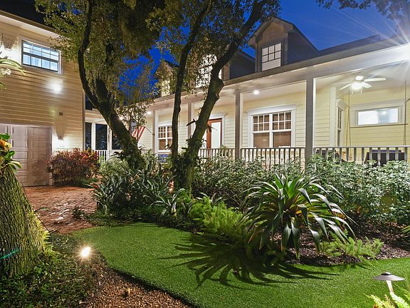 The outdoor living spaces are equally remarkable. A screened-in pool, lush turf with private putting green, fire pit, and professionally designed landscaping create a resort-style oasis. Majestic oak trees draped with orchids set the stage for morning coffee on the wide front porch or evenings by the fire under the stars.