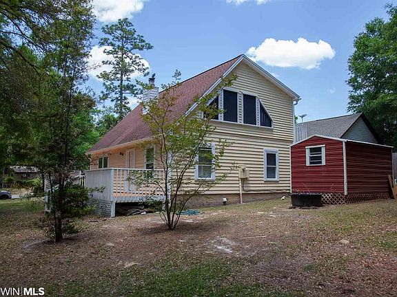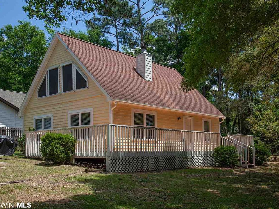 Get it while you can! Wonderful, storm-ready cottage in the Spanish Cove Subdivision. Impact-resistant, hurricane windows down-stairs and storm guards for upstairs windows; this cottage has a recently-replaced heat pump (SEER 17+) with a de-humidifier and remote control software, a young roof and quaint features. Loft room (bonus room) overlooks a den, which is highlighted by a wood-burning fireplace. The cedar siding is in excellent condition. The front of the house has a wrap-around, open deck, overlooking the beautifully-shaded yard. Plenty of outside storage. Great as a second home or starter home! Located close to the Spanish Cove Subdivision amenities, (indoor/outdoor pool, club house, tennis/racquetball and bay front pier). This quiet community has the advantage of being near Pensacola, Foley shopping and Gulf beaches; and the public boat launch is a few minutes away!