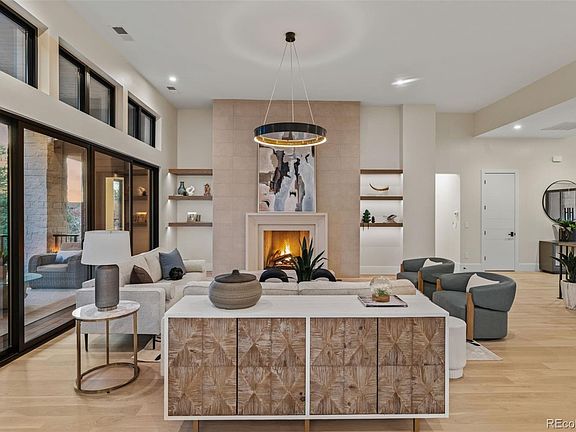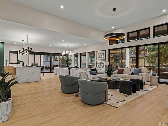 This one-of-a-kind Colorado Contemporary by award-winning Renaissance Homes redefines elevated living. Set on a serene 1/3-acre lot backing to open space, the home is a masterclass in blending modern design with the soul of the forest. Floor-to-ceiling glass and 16-foot multi-panel doors dissolve the boundary between indoors and out, evoking the feeling of living in a luxurious treehouse. Moments here matter. Sip morning coffee in the sun-soaked front courtyard. Host golden-hour gatherings on your wraparound deck with outdoor kitchen and custom fire pit. Inside, the open flame fireplace and feature wall ground the great room in natural warmth and refinement. The kitchen is a space to create and connect anchored by professional appliances, quartz counters, and custom cabinetry, with a seamless flow to outdoor dining. The main-floor owner’s suite is a private sanctuary, complete with spa-worthy bath, freestanding tub, and an expansive multi-head shower. A dedicated study offers the peace you need for inspired work. A main-floor guest suite provides comfort and privacy with its own en-suite bath. The finished walkout basement is an entertainers dream designed for game days, movie nights, and effortless hosting with a wet bar, lounge space, and room for recreation. A glass-enclosed home gym and oversized steam shower elevate wellness, while two more en-suite bedrooms, a secondary laundry, and abundant storage complete the lower level. The fully finished garage with EV charger, hot/cold hose bib, and space for hobbies as purposeful as it is polished. Feel like you’re in the mountains, yet just minutes from shopping, dining, top schools, and easy freeway access. This is not just a home, it’s a ready-to-live experience in modern luxury.