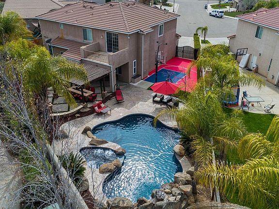 6 Bed,3 Bath ,3 Car Garage ,Pool/Waterfall/Spa at Deauville Estates. Huge cul-de-sac lot with RV parking and basketball court. This home has over $175,000 in upgrades including a Solar Owned System for the home. The home was remodeled to include a 6th bedroom with permits ,sculptured hardwood flooring, plantation shutters, new windows including slider. 2 bedrooms downstairs with one bath, formal dining, living room with fireplace and surround sound system, Gourmet kitchen with new stainless Kitchen Aid appliances, center island, gas cook top, new custom cabinets and crown moldings.4 bedrooms upstairs with a split staircase. Bathroom w/ travertine floors and tub/shower. Master bath has soaking tub and separate shower. Large Master suite with balcony overlooking the backyard and Sierra Nevada Mts., Master closet with built-in organizer cabinets and shelving .Tile roof, solar tinted windows. Don't let this home away!!!