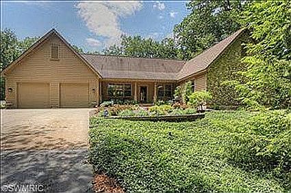 Nestled on a private lot, you are in for a treat when you walk through this custom built executive ranch home. A winding sidewalk with a trickling water fountain and beautiful landscaping create a welcoming focal point. An open foyer greets you and flows into a spacious living room featuring a gorgeous fireplace and vaulted ceilings. Beautiful updated hardwood flooring shines throughout the main level. Just off the living room is a four season room where you can enjoy your morning coffee or evening glass of wine. The main floor primary bedroom has two walk-in closets and the en suite offers a gorgeous tiled, walk in shower with multiple shower heads.