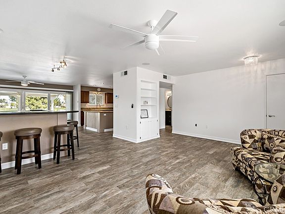 THIS HOME IS LIKE A MODEL HOME! Absolutely turnkey!! It backs up to the Golf Course!!! Located in the 55+ community of Sun City Civic Center. This community is close to stores, shops, and the 215 Freeway. The HOA offers pools, jacuzzi, exercise room, activities, shuffleboard, RV storage (for a very low fee), and more. This is a 3 bedroom, 2 bathroom over 1600 square feet, single story, open floor plan concept home!! Neutral paint throughout, huge laundry room, tile wood plank flooring, beautiful bar in the living room, granite counters, living area open to kitchen. California style large sliding glass door that opens up to the backyard with a beautiful view of the golf course, a covered large patio with ceiling fan, low maintenance yard, dual pane windows throughout. Lots of natural light, 2 car attached garage, newer roof and Hvac system. Upgraded cabinets, and bathrooms. You have to see this home to believe it. An absolute stunner. Did I mention the HOA is only $400 a year and there are extremely low taxes in this community!! Hurry up it won't last!!