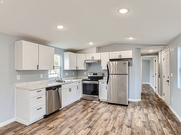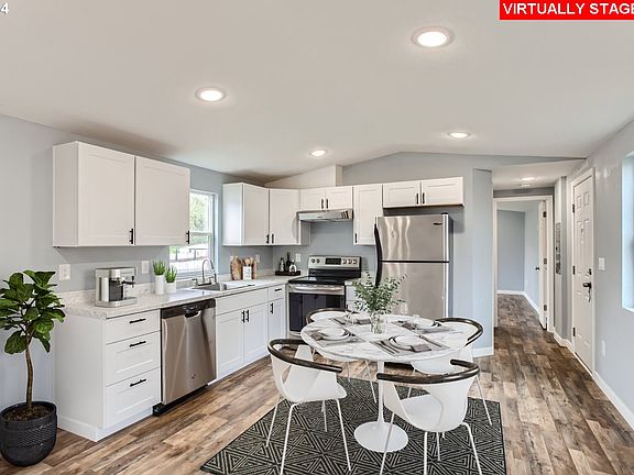 Welcome home to this remodeled and updated 1989 single-wide 2-bedroom, 2-bathroom manufactured home. New interior remodel includes, open concept kitchen, flooring, lighting, paint, bedrooms, bathroom and more! New exterior paint, siding, and porch. This turn key home is located in Eagle Crest Mobile home park. Space rent is $875 which includes sewer, water and trash.