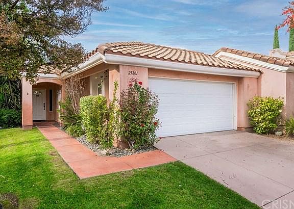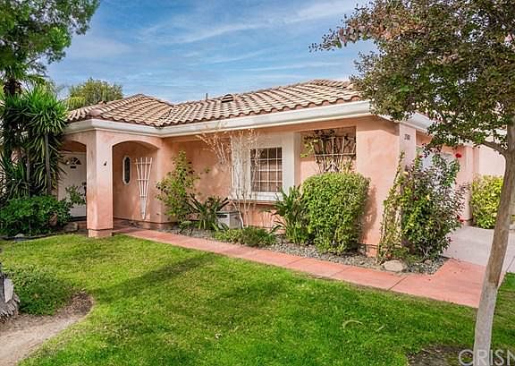Gorgeous single story Stevenson Ranch home! Impressive remodeled kitchen with white cabinets, granite counters, subway tile backsplash, farm sink, wolf stove & stainless appliances including refrigerator. Newer lighting, ceiling fans, custom sliders from living room & master to yard. Custom tile throughout with carpet only in 1 bedroom. True pride of ownership! 2 good-sized bedrooms, both with walk-in closets. The nice yard features large patio, big palm trees & no neighbor behind. Open floor plan with vaulted ceilings & indoor laundry. Low HOA & no Mello Roos plus the highest rated schools around!