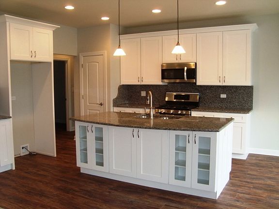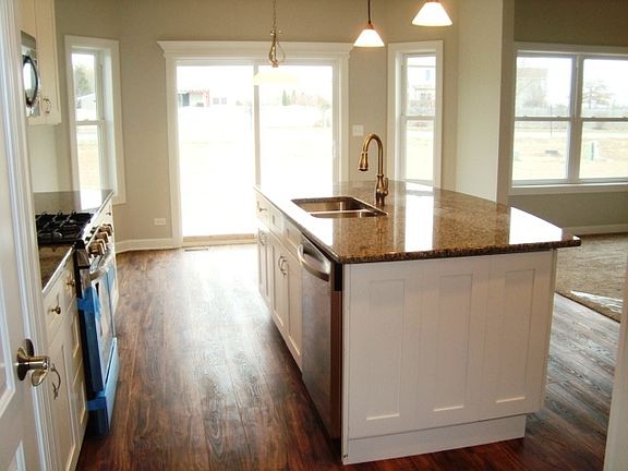 Woods of Aux Able Beauty - New construction ranch - 3 bedrooms...2 1/2 baths...open floor plan...kitchen boasts white shaker style cabinets with granite counter tops...dark luxury laminate in most rooms...fireplace with custom mantle and granite surround...master bedroom walk-in shower with seat, hand held sprayer, and large walk-in closet...brushed nickel fixtures thru-out...solid white 2-panel doors thru-out...vaulted ceilings in dining room and family room, 9 ft. ceilings in rest of home...dining room includes fluted columns...full basement framed and insulated with passive radon system installed...open staircase to basement...3 car garage...90% efficiency H20 heater and furnace...2x6 exterior walls with blown in high"R" rating insulation...HIGH END LG APPLIANCES.