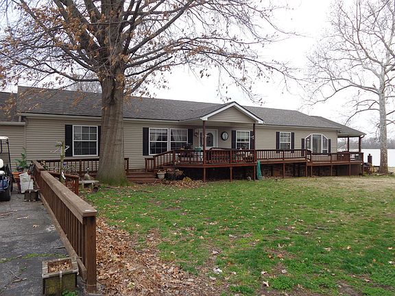 LOOKING FOR WATERFRONT ON GRAND LAKE WITH A GRAND VIEW?? This 4 bed, 2 bath, 2356 SF manufactured home has it all! Gentle slope to water, additional large lakeview living area with woodburning fireplace, attached 2 car garage, large covered deck on lakeside, new roof, dishwasher & hotwater tank AND NEW HEAT/AIR UNIT. Slips available in community dock with use of heated fishing dock and pool, plus NO mowing!