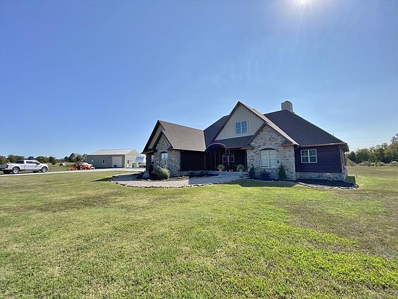 AMAZINGLY RUSTIC & ELEGANT gentleman's ranchette! SUPER CUSTOM built 4 bedroom 3.5 bath home on 10 acres w/ 30x40 shop finished out to 1 bed 1 bath living quarters with kitchen, spray foam insulation, and central HVAC. Over the top detailed craftsmanship through out the home. Beautiful real wood fireplace, 12x12 destressed post and beam construction, tongue & groove stained ceilings, brick barrel ceiling to name just a few of the rare features this home boasts. Large master suite has his & her closets with a saferoom. Large Master bathroom with Italian tile shower & heated floors with jacuzzi tub. Huge Bonus room w/ half bath could be used as 2nd living area, office, or 5th bedroom. House features instant hot water heater, Live edge stained wood siding, new landscaping, 2 HVAC system,
