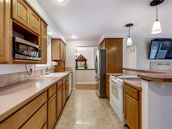 This gorgeous, secluded home has been meticulously cared for and is ready for you. 3 lrg bedrms, 1.75 baths, walk-in closets, rec room w/wet bar, plus a large bonus which can be used as a 4th bedrm. The ample covered outdoor space is perfect for entertaining or relaxing in your serene, park-like paradise. Additionally, is covered parking for 4 and a potential 672sqft, mother-in-law suite above the detached garage. It's beautifully located next to Lk Fenwick park and is perfect for commuters.