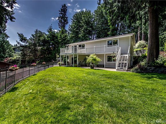 This gorgeous, secluded home has been meticulously cared for and is ready for you. 3 lrg bedrms, 1.75 baths, walk-in closets, rec room w/wet bar, plus a large bonus which can be used as a 4th bedrm. The ample covered outdoor space is perfect for entertaining or relaxing in your serene, park-like paradise. Additionally, is covered parking for 4 and a potential 672sqft, mother-in-law suite above the detached garage. It's beautifully located next to Lk Fenwick park and is perfect for commuters.