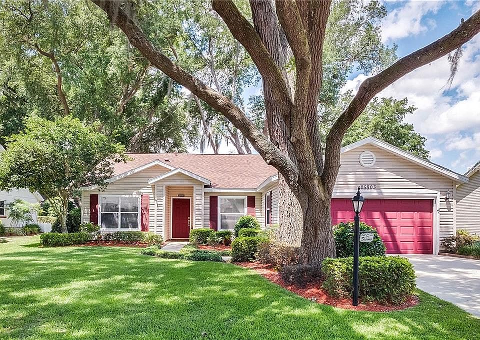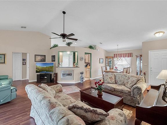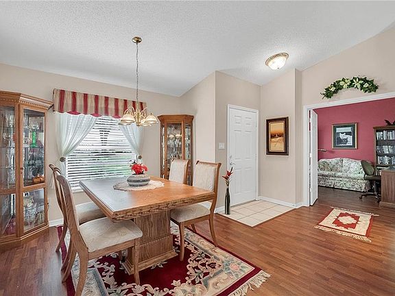 Charming and meticulously maintained, this is an absolute must see. First will be impressed with the great mature landscaping. Then as you enter the foyer of the home the beautiful laminate wood floor will capture your attention. The large living room has 8' sliding doors that provide access to your lanai and a wonderful view of your backyard which almost brings nature inside as part of your décor. Left of the foyer are double doors to your study/den and to the right is a delightful formal dining room. The kitchen features an opening to the living room so you can chat with your guests as you put the finishing touches on your meal. At the other end of the kitchen is a breakfast nook with bay window. The floor plan is spit providing privacy for you and your overnight guests. Both bedrooms have sliding door access to the lanai. The master bath has double vanity and a large walk-in shower. The guest bath has a tub/shower combination. The backyard has been landscaped for easy care (no grass to mow) and there is a large patio for barbequing and relaxing in nature. The garage has lots of storage, a workbench. and a screen garage door. AC 2014-5 New Roof 2019 It is ready for you to move right in and start living your dream in The Plantation at Leesburg. Two Championship golf courses, 3 large clubhouses, 3 heated pools, full time activity directors, 100+ activities per week, two fitness centers, walking and biking trails & a 30-45 minute drive to all Orlando attractions! Monthly HOA fee is only $100