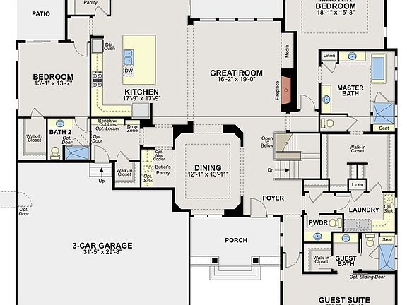 Exquisite ranch home on over 1/2 acre home-site on cul de sac. Open floor plan featuring 3 bedrooms, 3.5 baths, 3-car garage, a gourmet kitchen with extra large island, top of the line stainless steel appliances, quartz counter tops, extended covered deck great for entertaining indoors and out. The great room is filled with natural light and is open to the kitchen and nook. 10 foot ceilings and elegant upgraded finishes throughout. This home features 2 large secondary bedroom suites with en-suite baths perfect for multi-generational living. This is a truly special home, come visit today. *You can still choose your own design center selections if you hurry!
