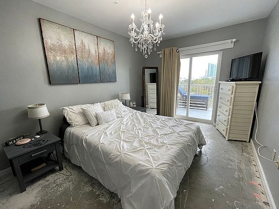 Catch a gorgeous sunrise or sunset right from your balcony, master bedroom or dining room table. The entire complex has had a new facelift. New windows were placed in unit and doors are set to be placed sometimes in February. This property is also a great rental and property will be open to rentals again in January 2022. Brand new state of the art elevators. Property has a gym, grilling area and pool onsite. Everyday is a beach day at Cotton Bayou State park which is directly across from the unit. The condo also has boat parking available and is also connected to the Cotton Bayou boat launch. Conveniently located in the heart of Orange Beach. Appliances, washing machine and dryer, lamps, barn doors, master balcony curtain and two palm tree end tables are included. Master bed and spare bedroom flooring left unfinished. Cable and water included in HOA fees.