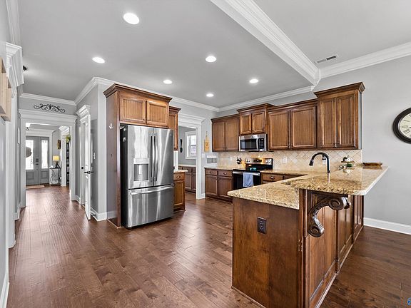 Discover elegance and comfort in this meticulously maintained 4 bed, 2.5 bath brick home. Featuring extensive crown molding and engineered wood floors, the main living areas show warmth and style. Nothing was left out in the kitchen w/ a tiled backsplash, granite countertops, and a butler's pantry for added convenience. Enjoy natural light throughout, highlighting the modern design and spacious living areas. Retreat to the isolated master suite w/ a glamour bath and large walk-in closet. Outside, enjoy the above ground pool with deck in the fully fenced yard for privacy. With a three-car garage, walk-in attic, and sought-after location, this home offers luxury living at its finest.