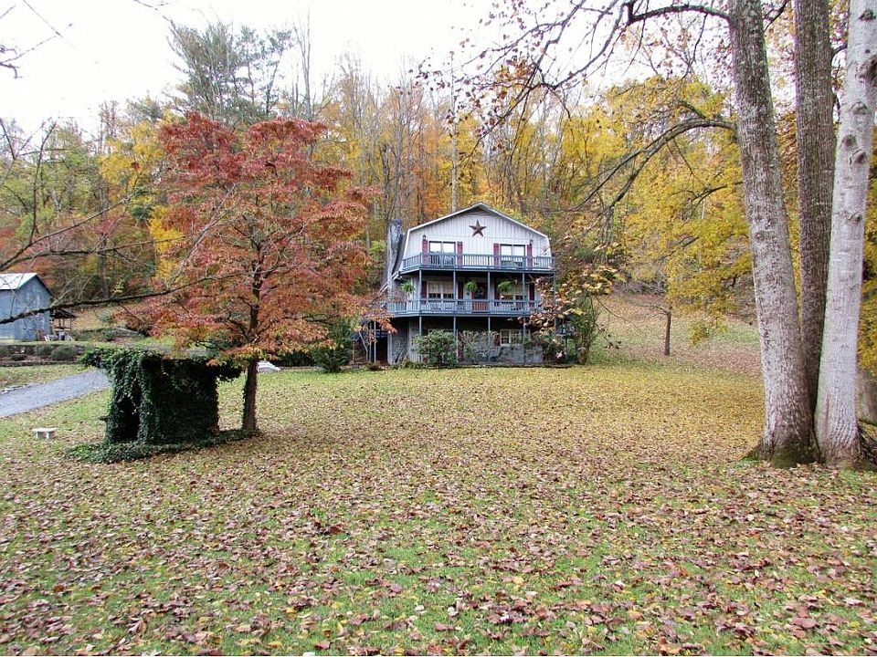 Gorgeous mini estate, just outside the City. Picturesque setting with the house situated far off the road, taking advantage of views of the expansive grounds and landscaping, along with surrounding mountain views. Rustic design, maintained to perfection. Entrance deck wraps around three sides of the home, with the front portion of the deck covered. Enter into an open concept living area offering a massive Great Room with wood burning fireplace, large dining room, totally updated kitchen with hickory wood cabinetry, quartz counter tops, tile back splash, breakfast bar and upgraded stainless steel appliances, all of which convey. The living area features wood beamed ceilings and brand new hickory hardwood flooring, adding to the cozy rustic appeal and charm of the home. Main level bath and laundry. The second floor consists of two huge bedrooms, each of which features patio doors leading out to the upper deck, affording one the feeling of living in the tree tops. The master suite is massive in size and offers his and her walk-in closets. The lower level basement is completely finished and can serve as either additional living space for the home or, could also be utilized as a separate in-law suite. Patio doors off this level access a patio, meaning that every level of the home has access to outdoor living areas. This area features a huge living/family room, second kitchen, third bedroom and third full bath. Split heating and cooling system with temperature controls for either the main or upper levels of the home. Security system. Attached two car carport provides sheltered access to the home. The grounds are absolutely beautiful with the ling paved driveway resurfaced just three years ago. 14' X 24' Barn with loft converted to workshop. An immaculate property in a gorgeous mountain setting, yet just 5 minutes from downtown. All info, taken from Tax records. Buyer/buyer's Agent to verify all.