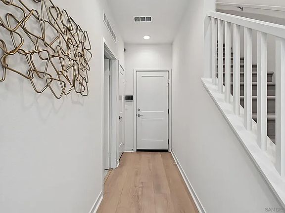 Welcome to Coral Springs in Carlsbad, where modern design meets coastal living! This brand-new home offers 4 bedrooms, 3.5 bathrooms, and a flexible layout designed for the way you live - including a downstairs bedroom with full bath, open-concept main level, private balcony, and upstairs laundry. Enjoy thoughtful upgrades throughout, including owned solar, luxury Wolf appliances, upgraded Shaker cabinetry, 8' interior doors, and enhanced lighting and electrical packages. The primary suite features two walk-in closets, a spacious dual-sink vanity, and a walk-in shower with upgraded finishes. Located just minutes from Carlsbad Village, the lagoon and beaches, and zoned for Carlsbad Unified's top-rated schools, this home offers incredible value and lifestyle. Community amenities coming soon include a resort-style pool & spa, dog park, bocce ball, and more! Whether you're looking for a full-time residence or a second home, this is coastal North County at its best.