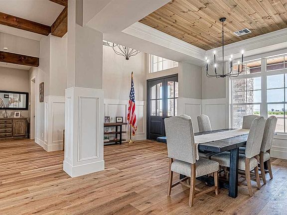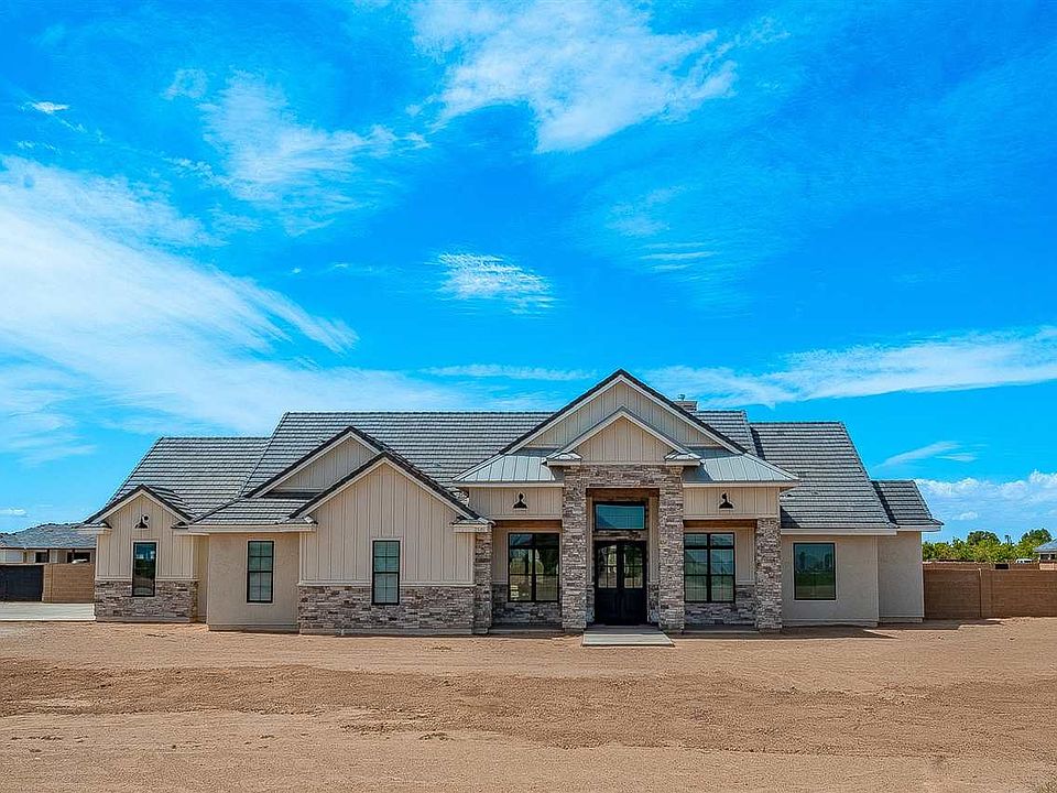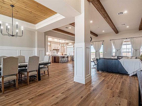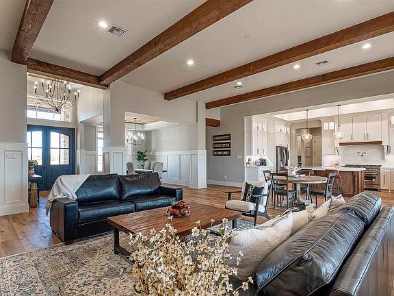 Exquisite Custom-Built in 2021 Home on Acreage with Sparkling Pool! This Modern Farmhouse will dazzle you with all it has to offer! Grand foyer, open-concept living, dining, and kitchen area accentuated with wooden beams & accents, & an eye-catching fireplace. Luxury kitchen with Z-line appliances, quartz counter tops & island, farmhouse sink, beautiful lighting, free standing tub & huge walk-in closet in primary BR. Laundry/mud room extended covered patio & driveway, double gates & much more! Like New!
